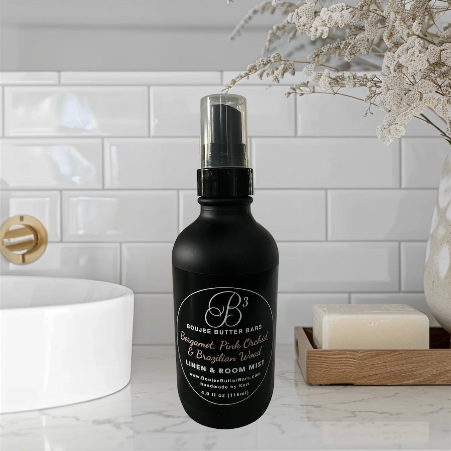 Enhance your self-care moments with our Bergamot, Pink Orchid, & Brazilian Wood Linen & Room Mist. This sophisticated blend refreshes your space and linens with a luxurious, earthy scent, creating an elegant and calming atmosphere perfect for relaxation.